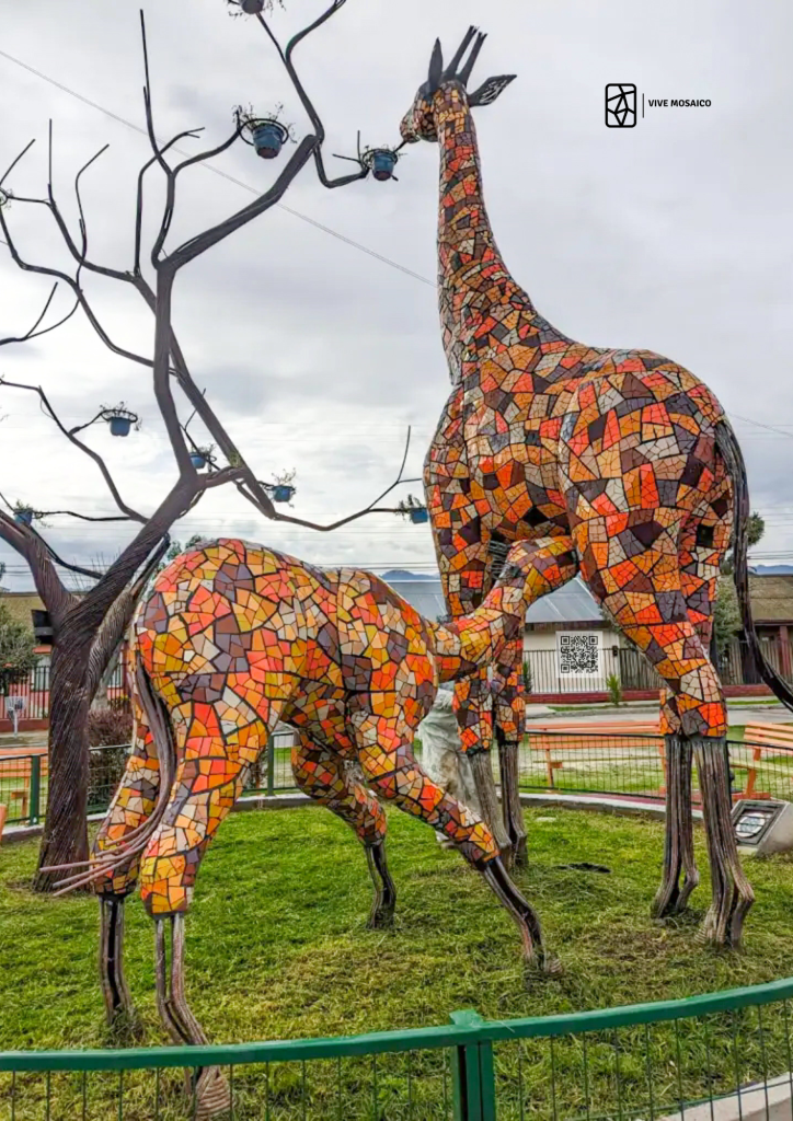 Parque de Esculturas en Mosaico ( a tamaño real ) , realizado para la Ilustre Municipalidad de La Calera , en una búsqueda de optimizar el consumo hídrico de sus plazas y crear un punto «turístico – cultural » para la comuna . Las esculturas están emplazadas en el Bandejón central de la Villa Cemento Melón y tienen una superficie Total 60 mts2 . Proyecto realizado bajo la dirección de Cristian Lueiza , en coordinación con Dideco La Calera , JJVV Cemento Melón y el apoyo de las Muralistas en Mosaico Angélica Astudillo, Yadra Daruich Larraín , Jenny Herrera y las Mosaiquistas asistentes Paula Carvajal , Marin Zachlhener ,Verónica Alvarez, Pau Nuñez , Mar Cecilia Valdivia, Pao Borquez, Dan Martinez y Franco Castro.