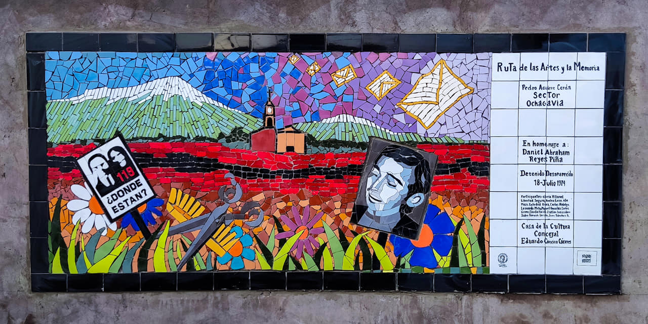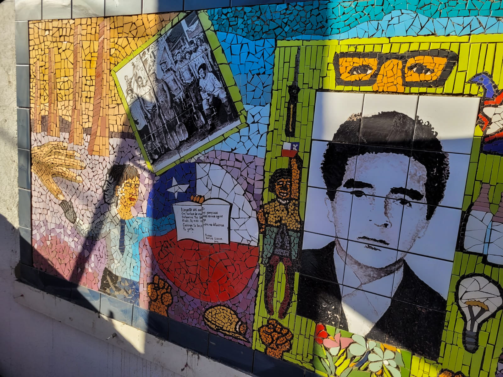 Montaje Murales Ruta de las Artes y la Memoria , realizado por la comunidad de PAC en el contexto de Talleres de Mosaico . Proyecto conjunto financiado con aportes del Gobierno Regional , Utem y la Ilustre Municipalidad de Pedro Aguirre Cerda. Equipo de trabajo : Jadra Daruich , Carlos Alberto Lizama , Juan Sanchez Sanhueza & Cristian Lueiza